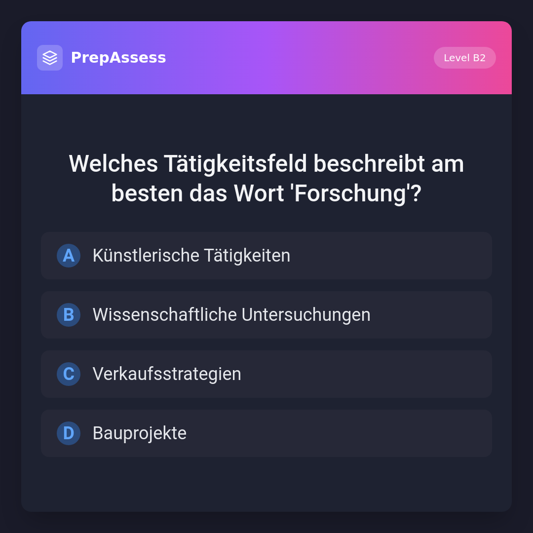 Welches Tätigkeitsfeld beschreibt am besten das Wort 'Forschung'?