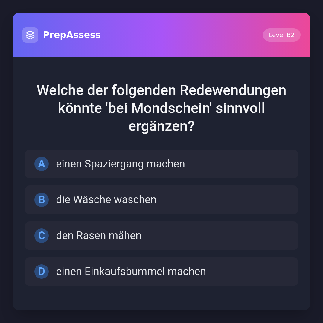 Welche der folgenden Redewendungen könnte 'bei Mondschein' sinnvoll ergänzen?