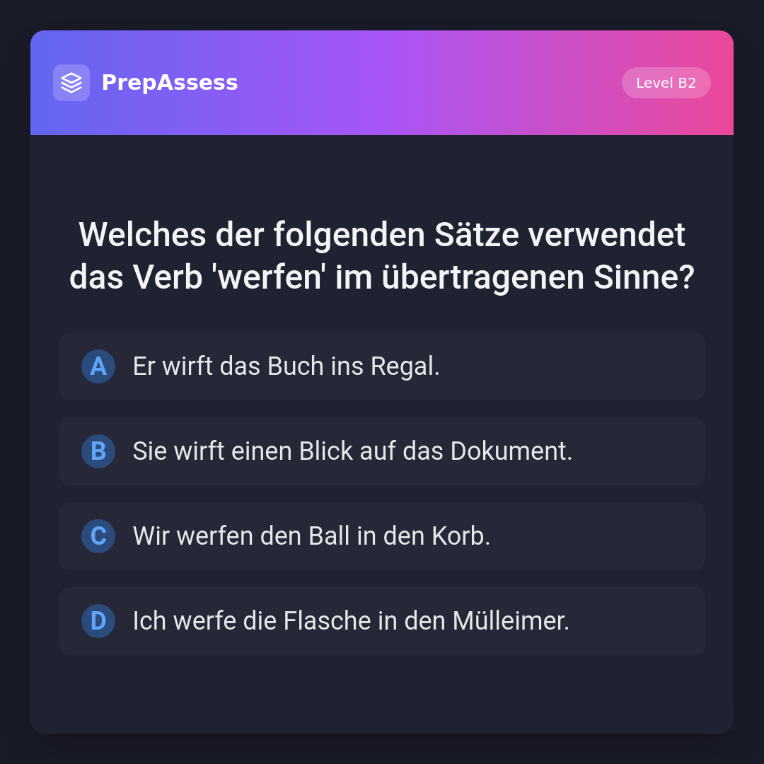 Welches der folgenden Sätze verwendet das Verb 'werfen' im übertragenen Sinne?