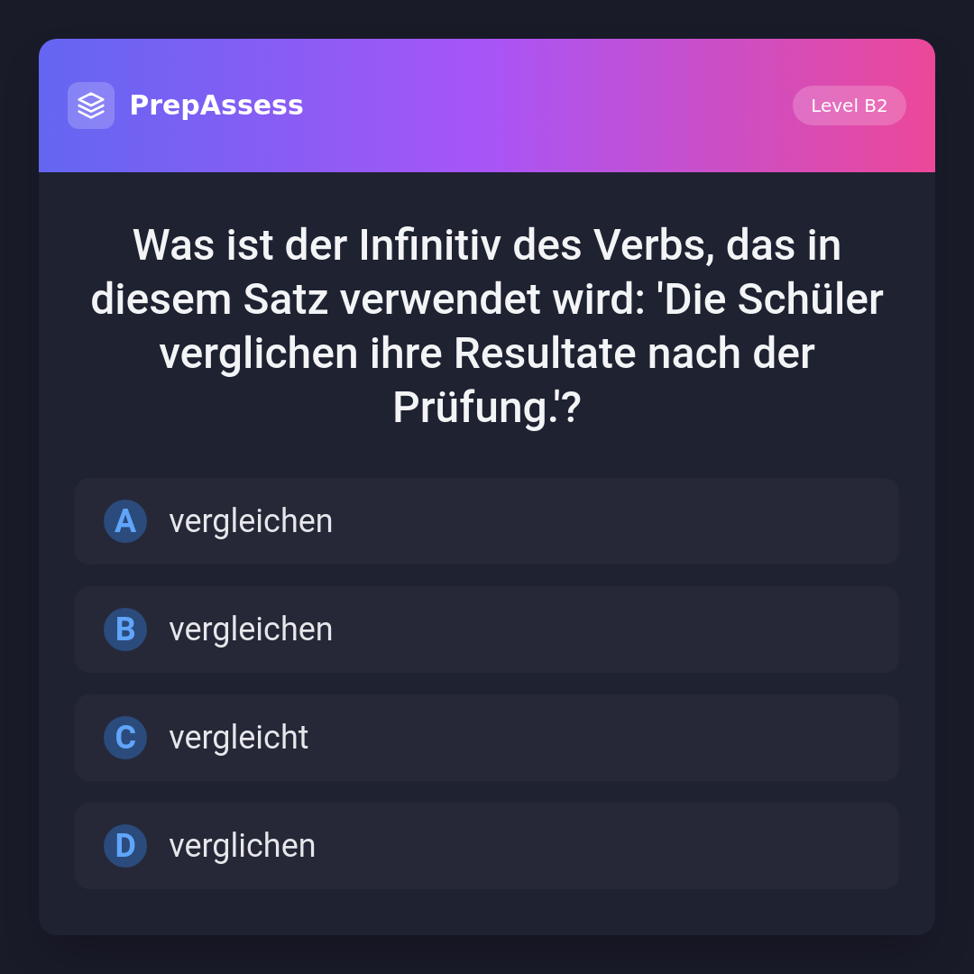 Was ist der Infinitiv des Verbs, das in diesem Satz verwendet wird: 'Die Schüler verglichen ihre Resultate nach der Prüfung.'?