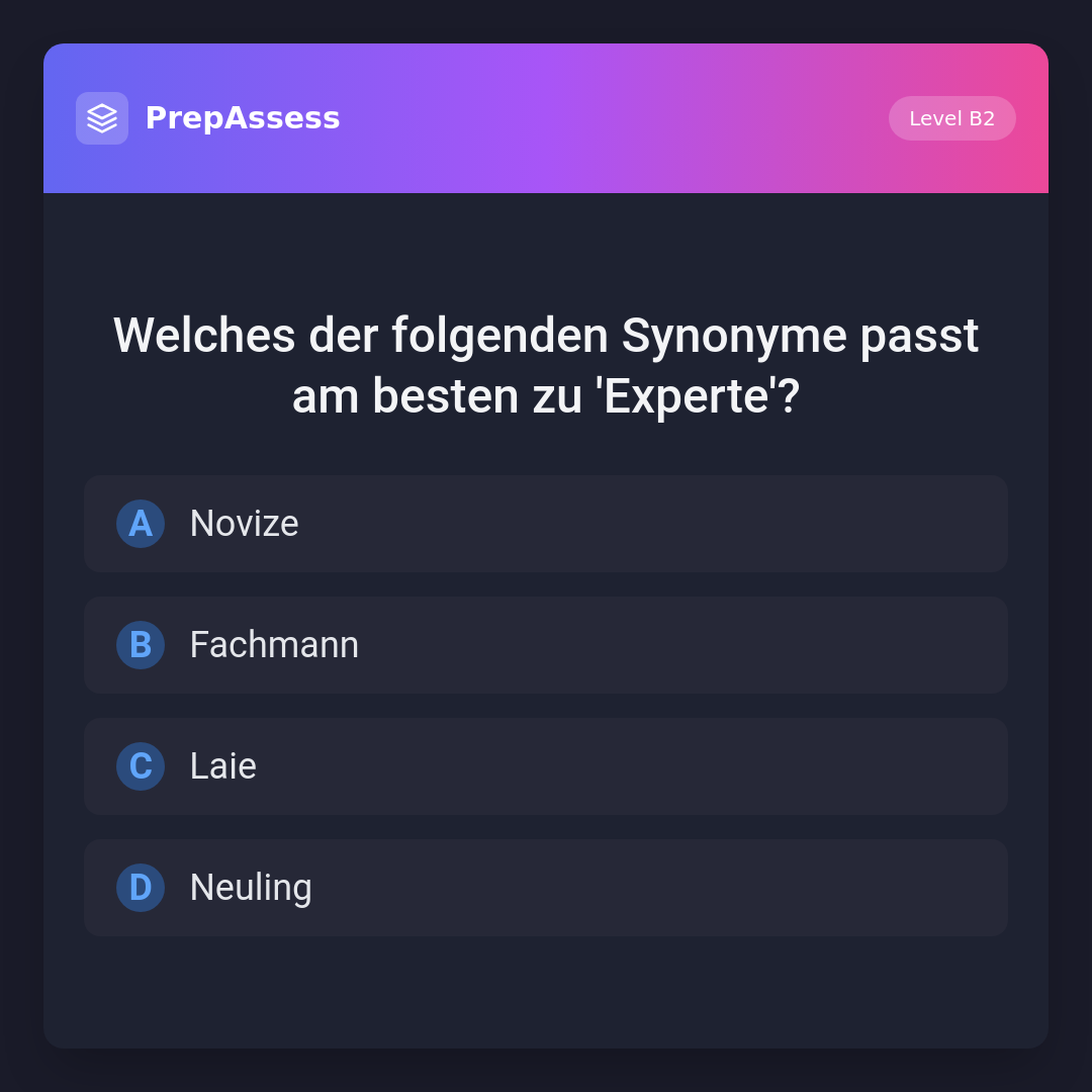Welches der folgenden Synonyme passt am besten zu 'Experte'?
