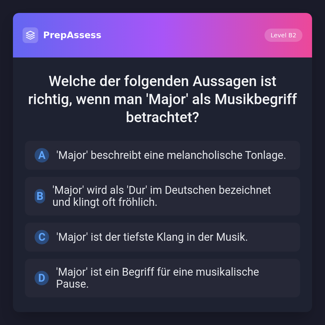 Welche der folgenden Aussagen ist richtig, wenn man 'Major' als Musikbegriff betrachtet?