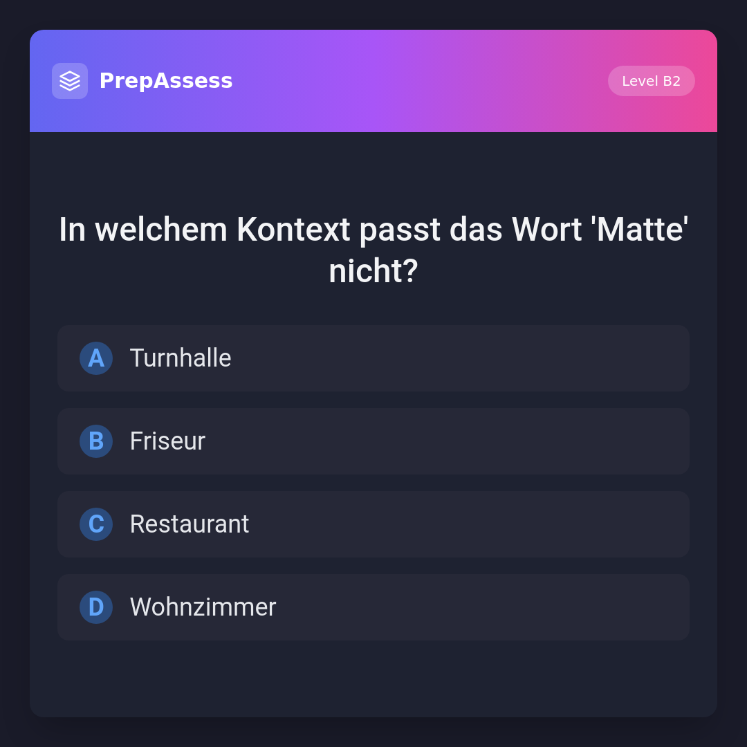 In welchem Kontext passt das Wort 'Matte' nicht?