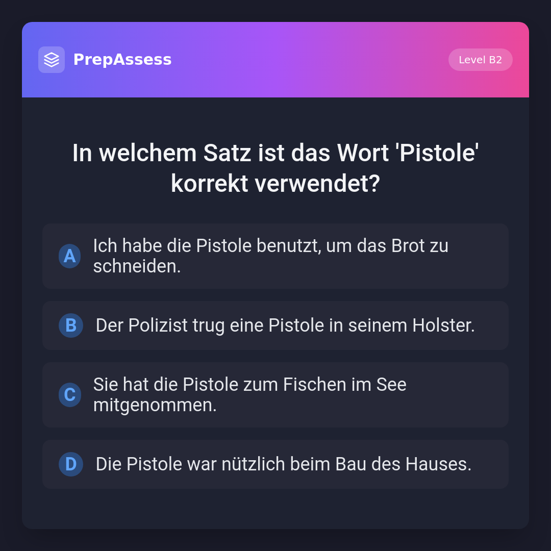 In welchem Satz ist das Wort 'Pistole' korrekt verwendet?