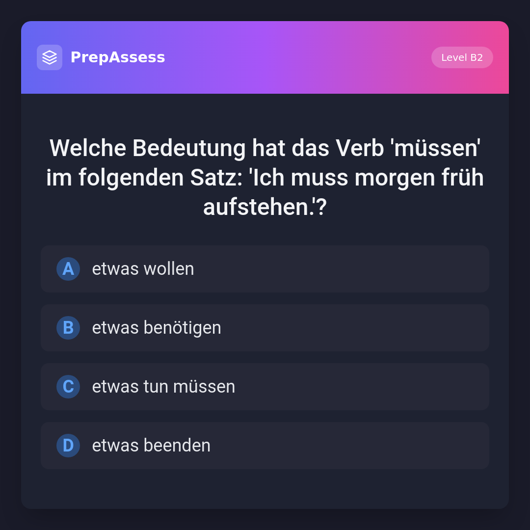Welche Bedeutung hat das Verb 'müssen' im folgenden Satz: 'Ich muss morgen früh aufstehen.'?