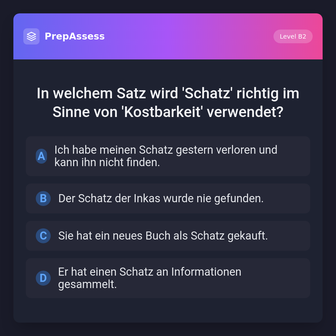 In welchem Satz wird 'Schatz' richtig im Sinne von 'Kostbarkeit' verwendet?