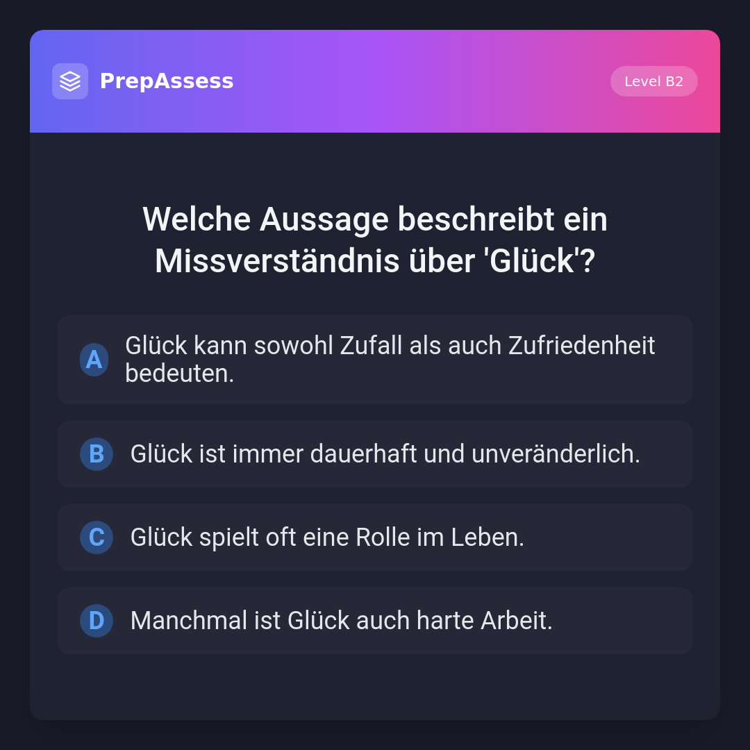 Welche Aussage beschreibt ein Missverständnis über 'Glück'?