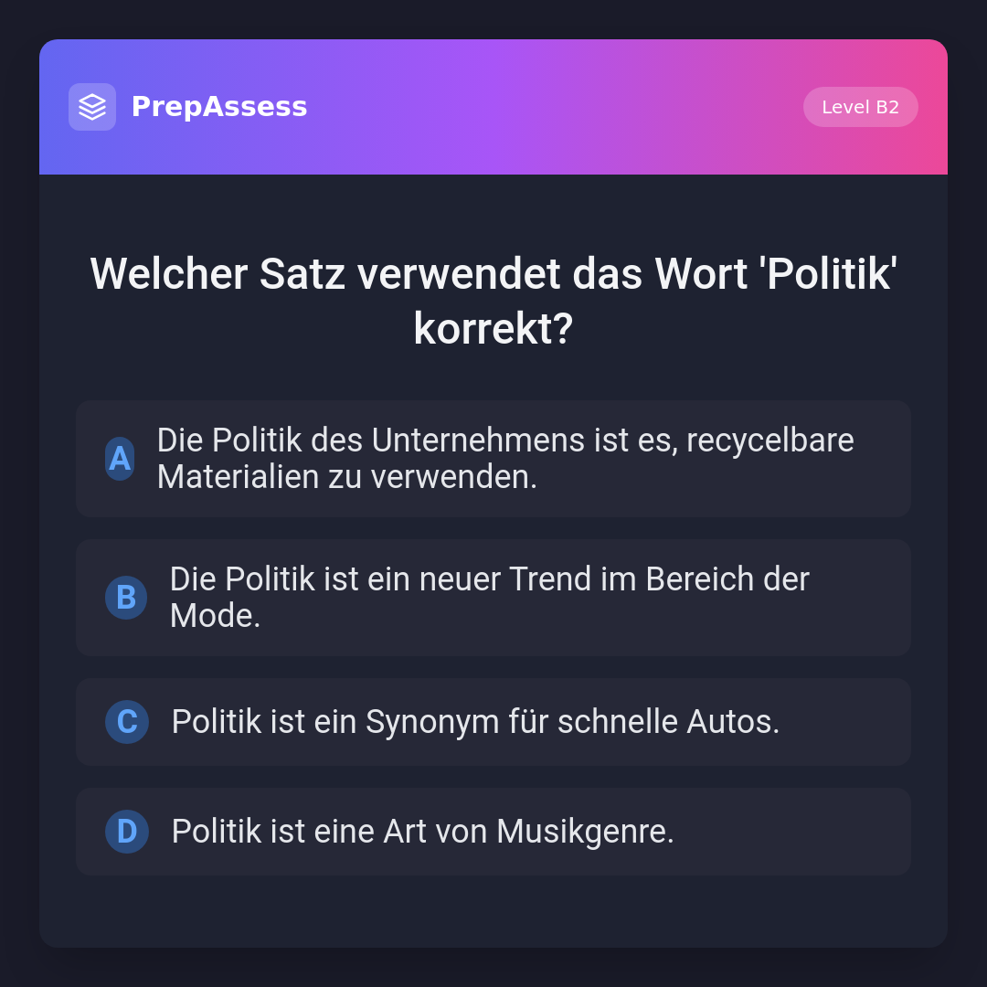 Welcher Satz verwendet das Wort 'Politik' korrekt?