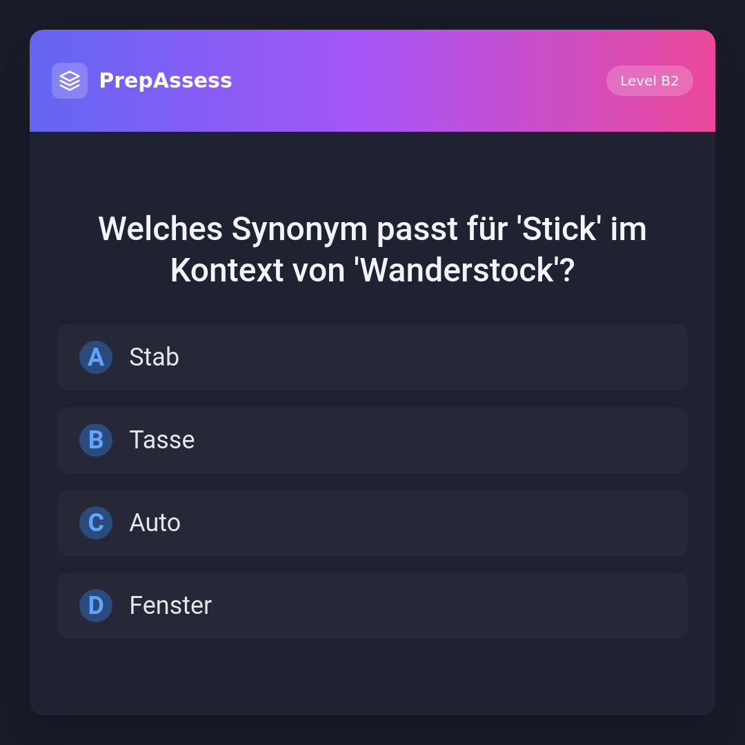 Welches Synonym passt für 'Stick' im Kontext von 'Wanderstock'?