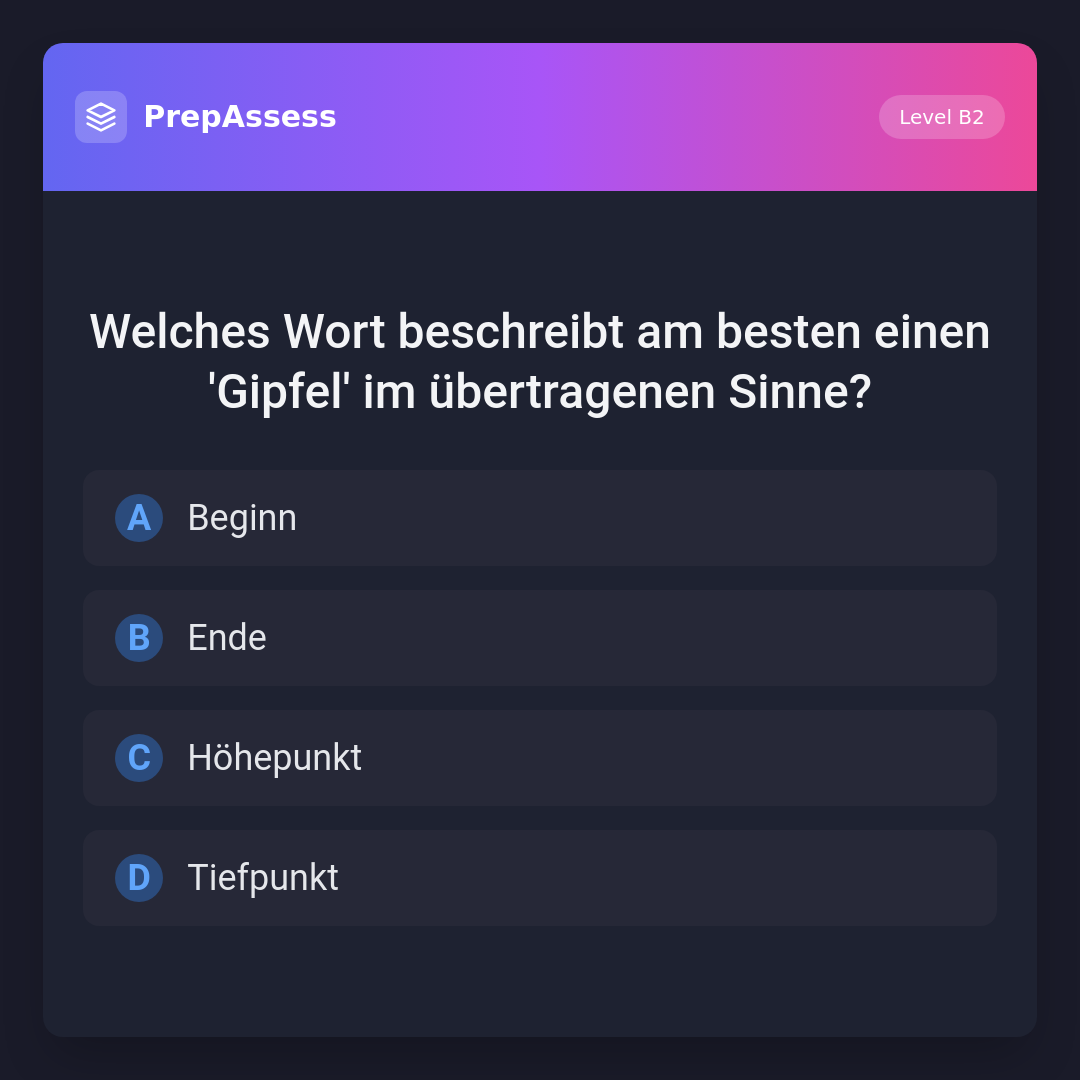 Welches Wort beschreibt am besten einen 'Gipfel' im übertragenen Sinne?