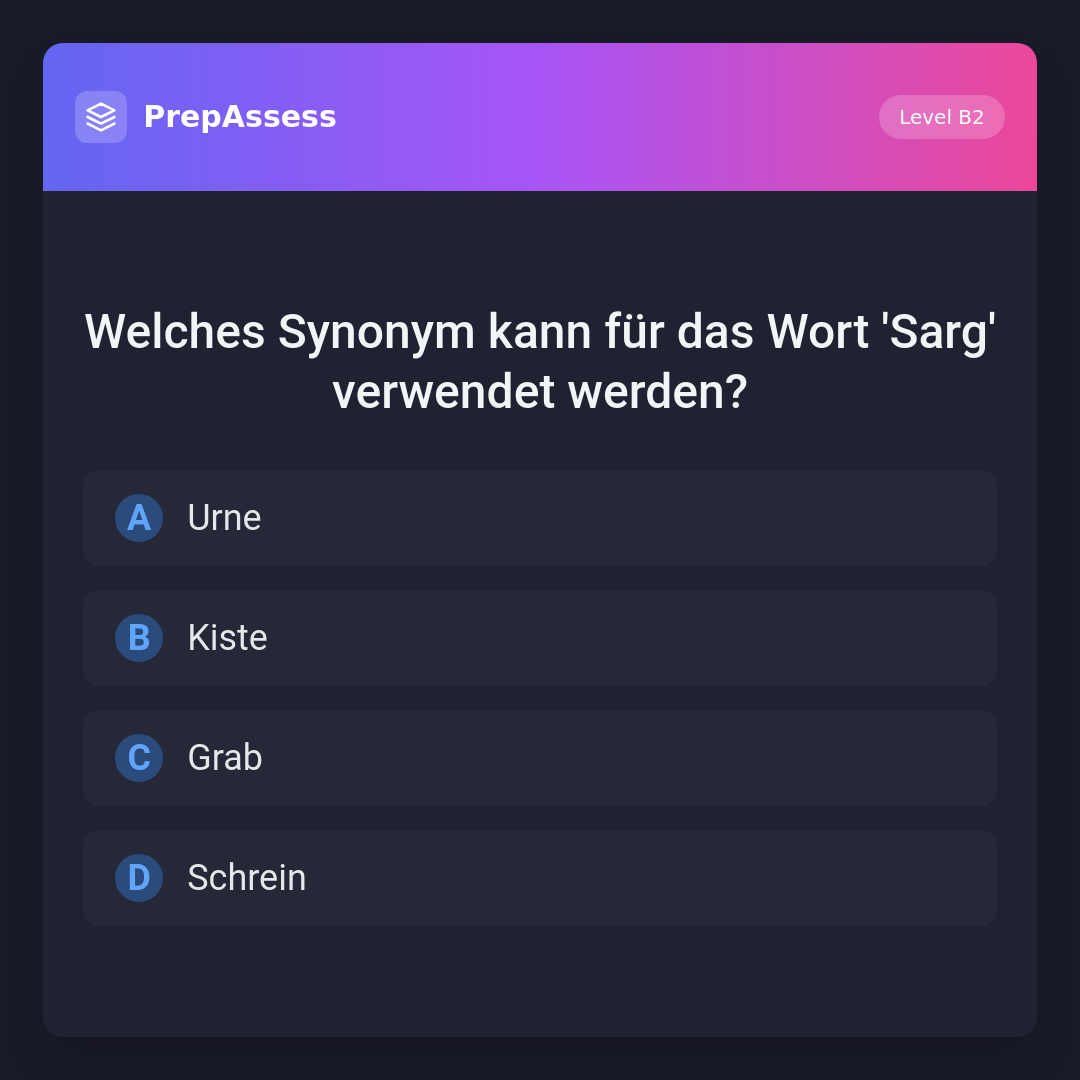 Welches Synonym kann für das Wort 'Sarg' verwendet werden?