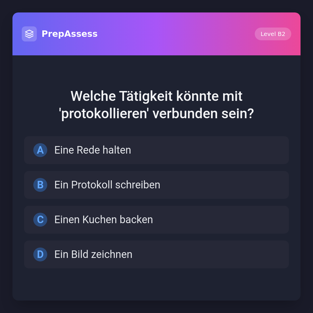 Welche Tätigkeit könnte mit 'protokollieren' verbunden sein?