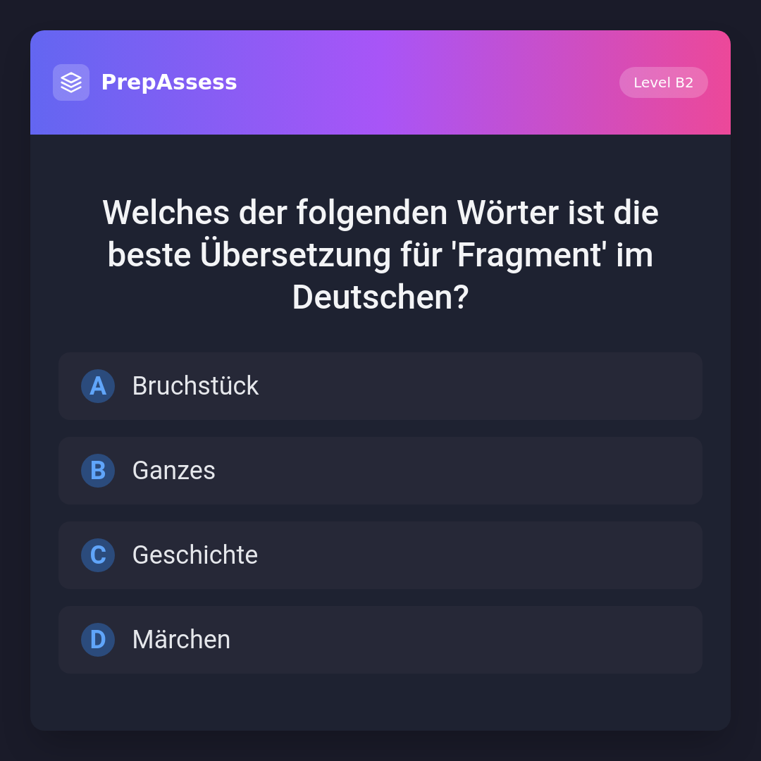 Welches der folgenden Wörter ist die beste Übersetzung für 'Fragment' im Deutschen?