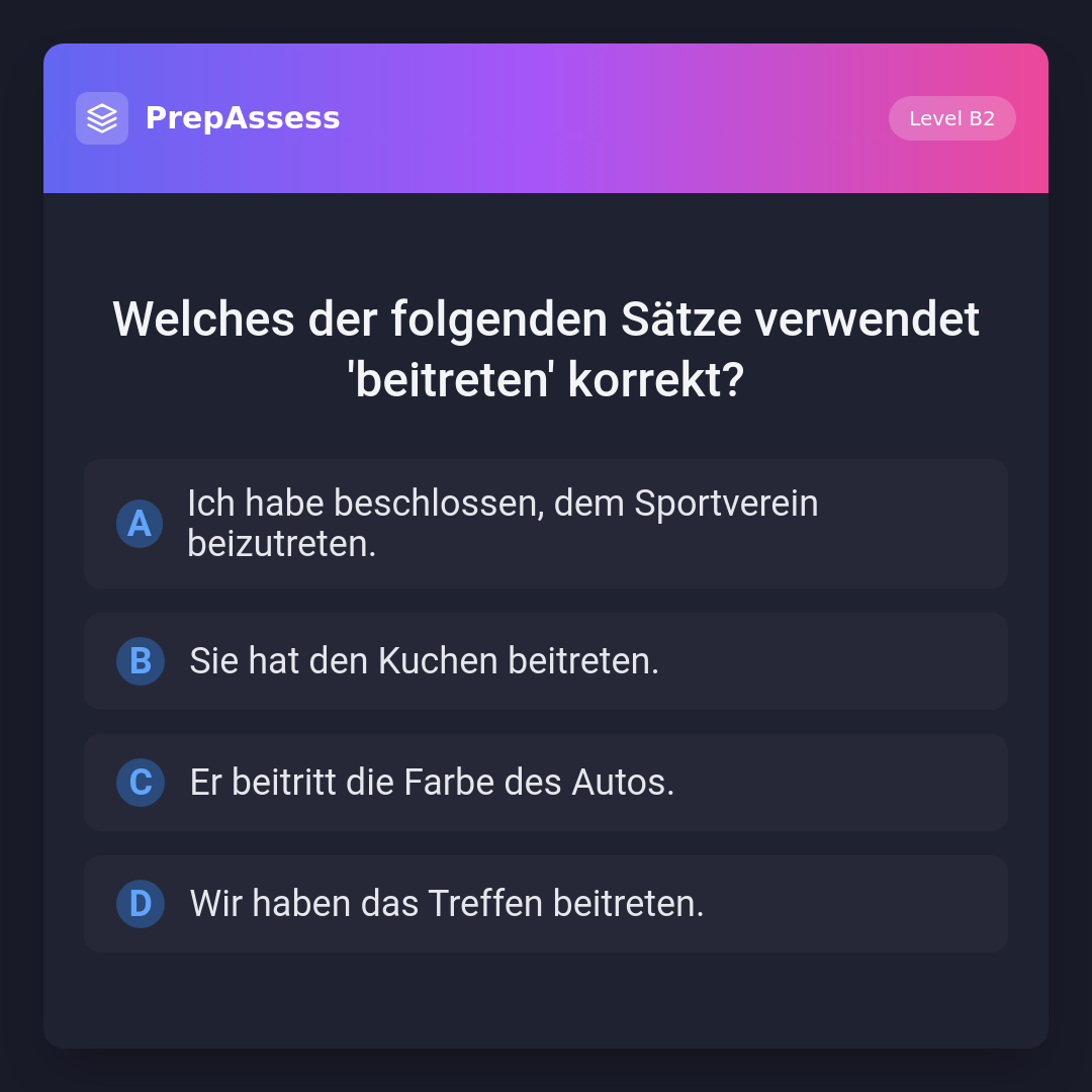 Welches der folgenden Sätze verwendet 'beitreten' korrekt?