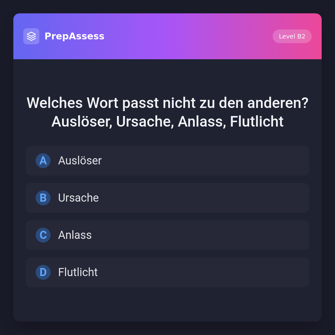 Welches Wort passt nicht zu den anderen? Auslöser, Ursache, Anlass, Flutlicht