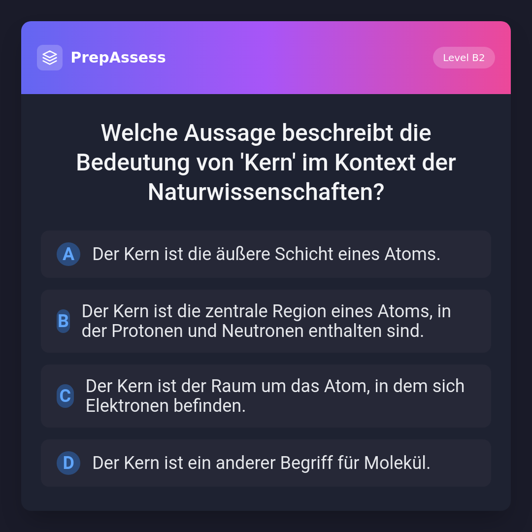 Welche Aussage beschreibt die Bedeutung von 'Kern' im Kontext der Naturwissenschaften?