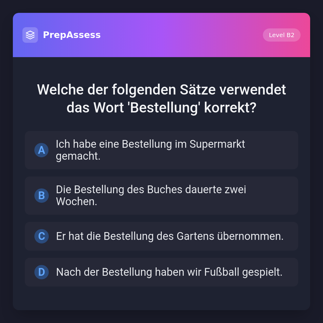 Welche der folgenden Sätze verwendet das Wort 'Bestellung' korrekt?