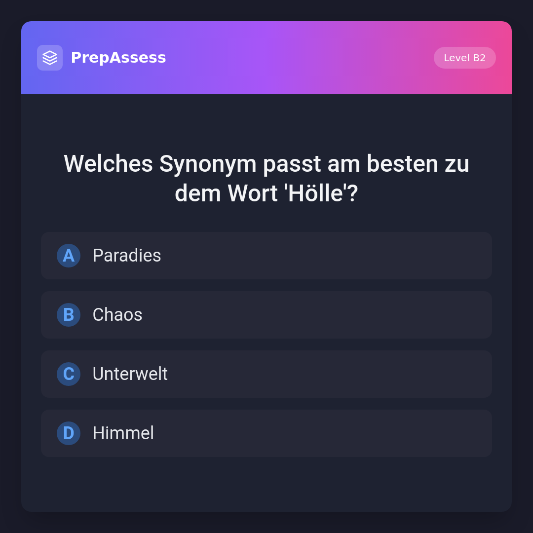 Welches Synonym passt am besten zu dem Wort 'Hölle'?