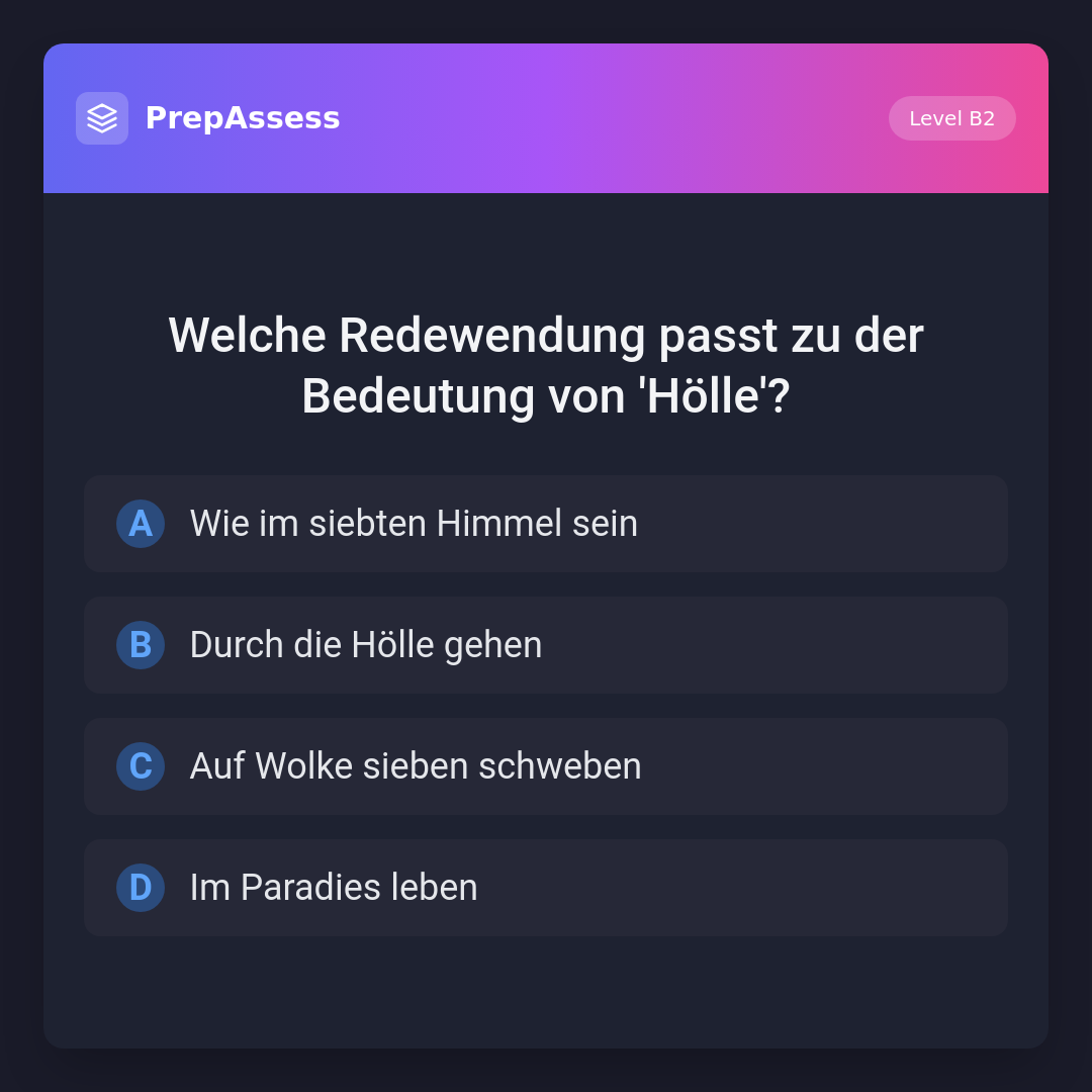 Welche Redewendung passt zu der Bedeutung von 'Hölle'?