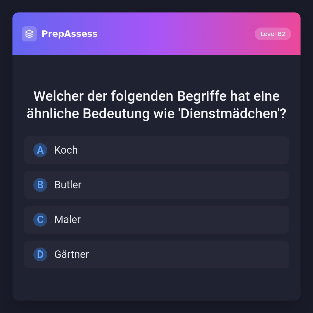 Welcher der folgenden Begriffe hat eine ähnliche Bedeutung wie 'Dienstmädchen'?