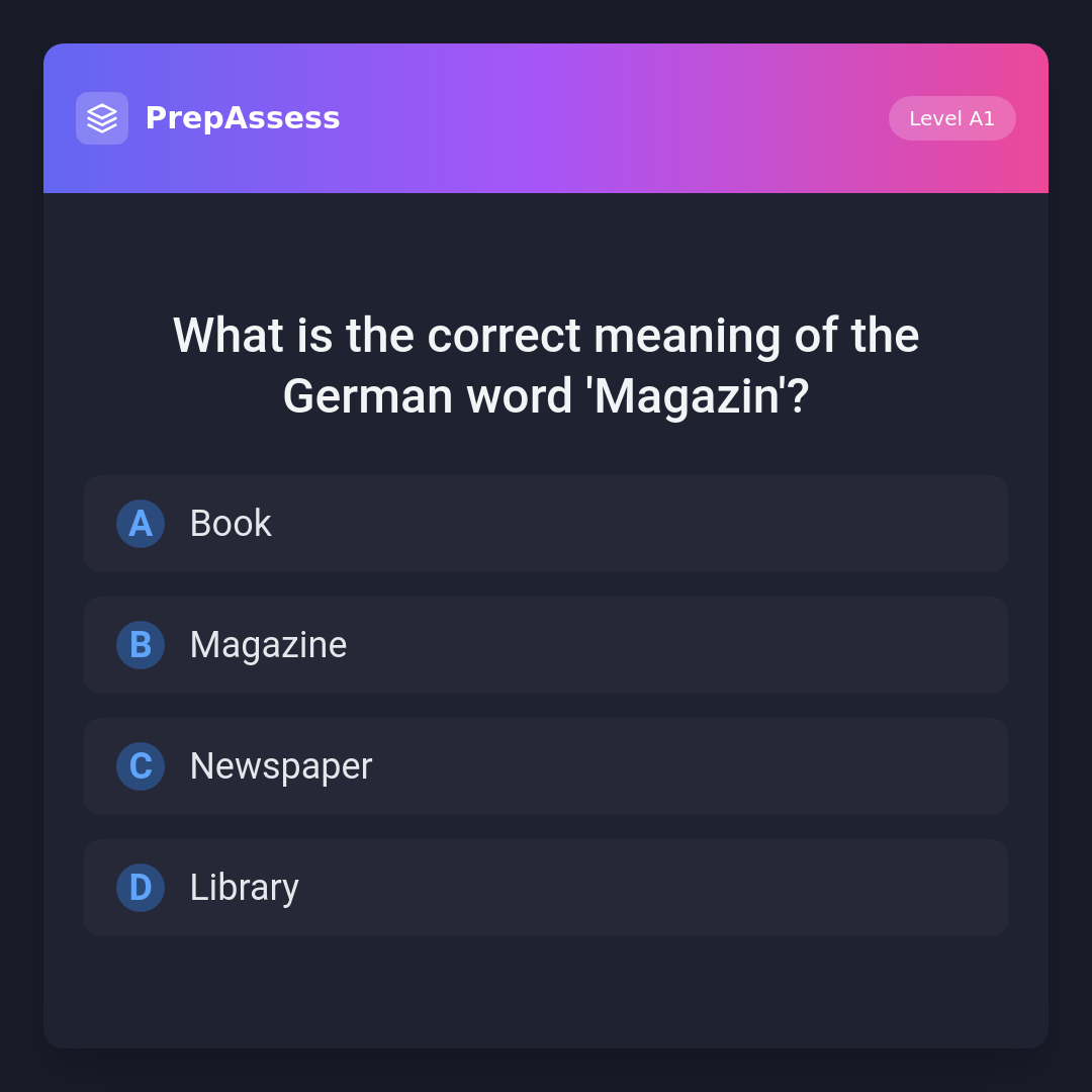 What is the correct meaning of the German word 'Magazin'?