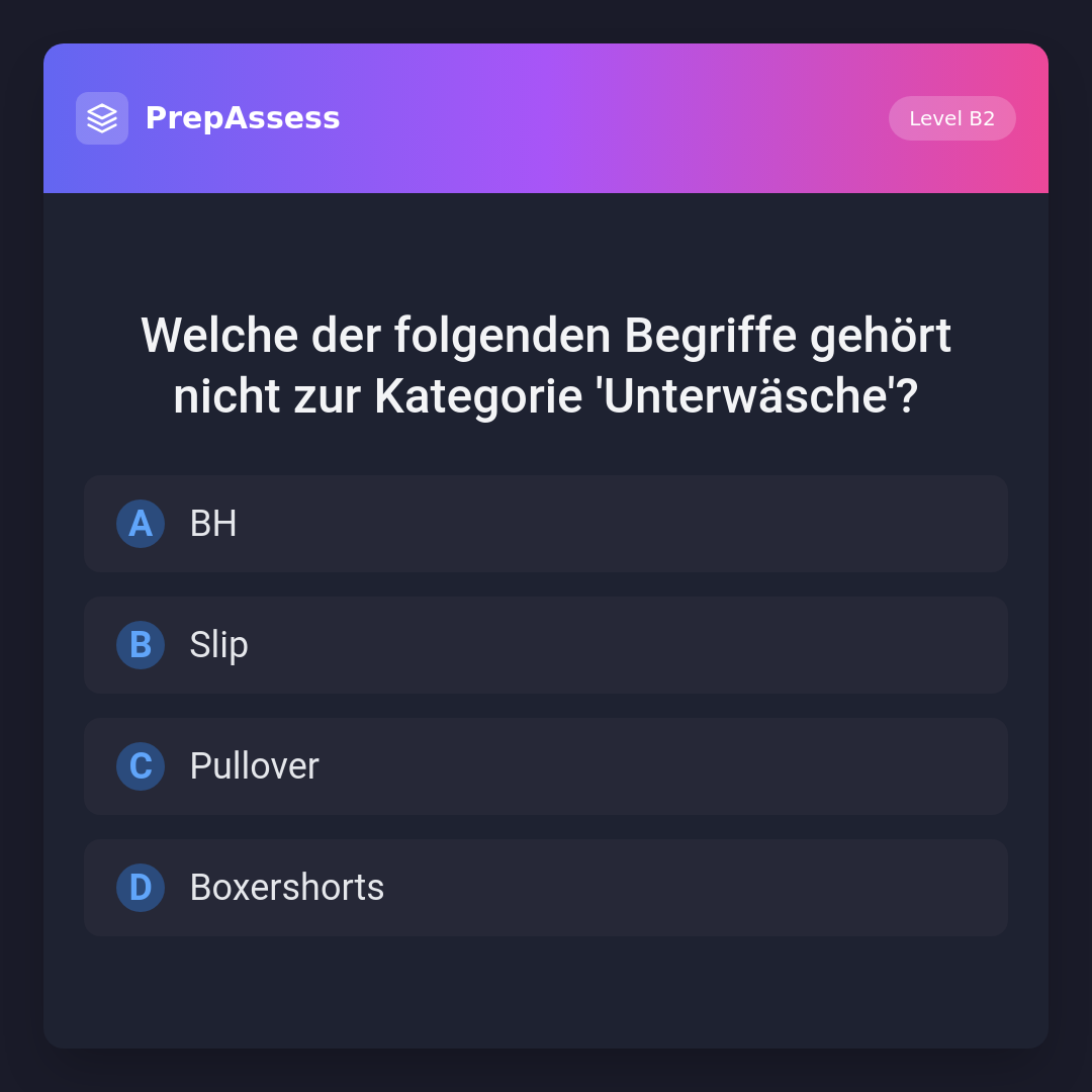 Welche der folgenden Begriffe gehört nicht zur Kategorie 'Unterwäsche'?