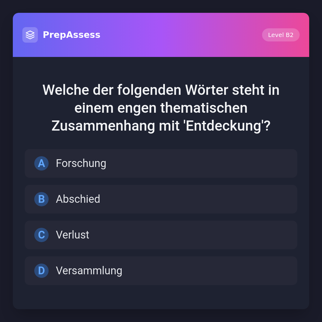Welche der folgenden Wörter steht in einem engen thematischen Zusammenhang mit 'Entdeckung'?