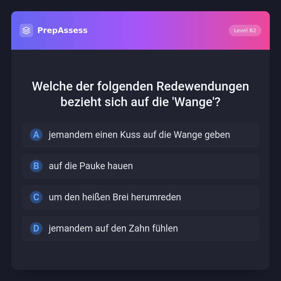 Welche der folgenden Redewendungen bezieht sich auf die 'Wange'?