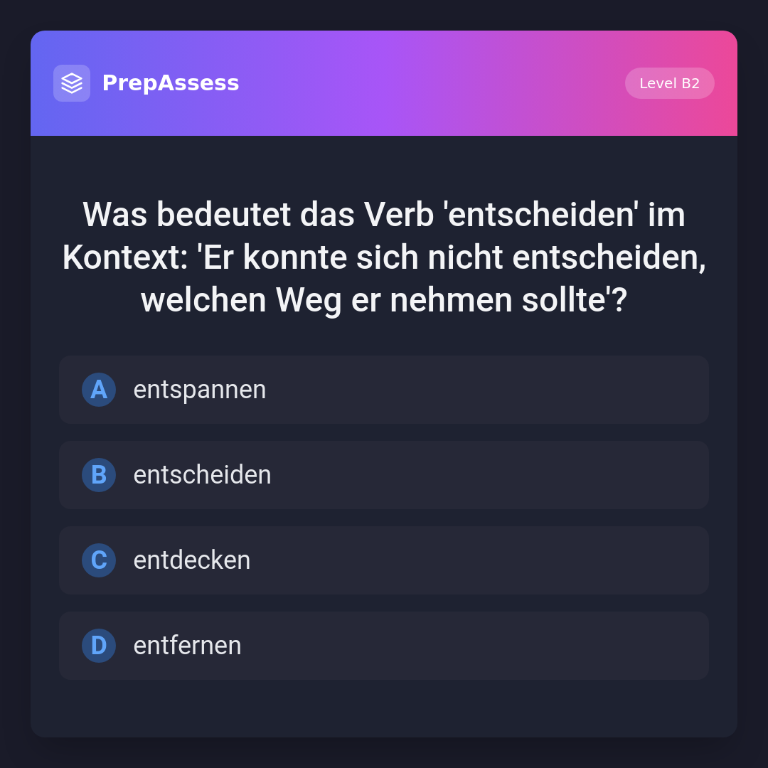 Was bedeutet das Verb 'entscheiden' im Kontext: 'Er konnte sich nicht entscheiden, welchen Weg er nehmen sollte'?