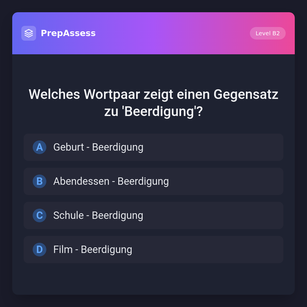 Welches Wortpaar zeigt einen Gegensatz zu 'Beerdigung'?