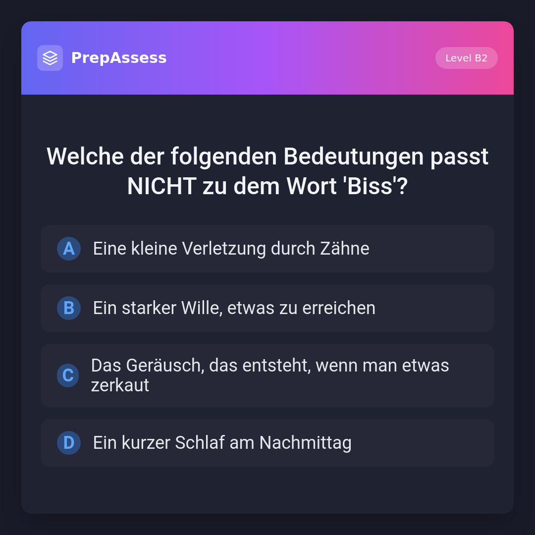 Welche der folgenden Bedeutungen passt NICHT zu dem Wort 'Biss'?