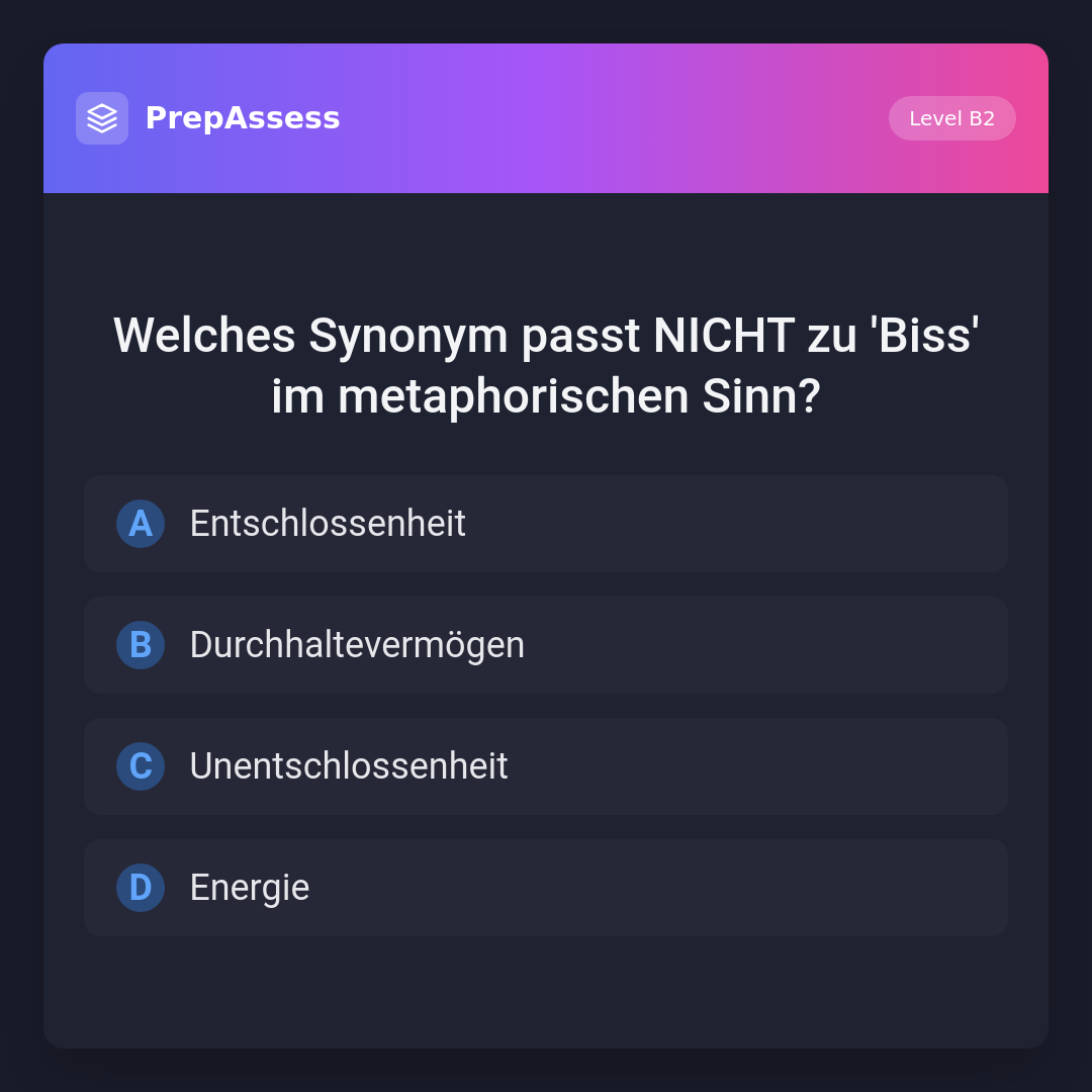 Welches Synonym passt NICHT zu 'Biss' im metaphorischen Sinn?