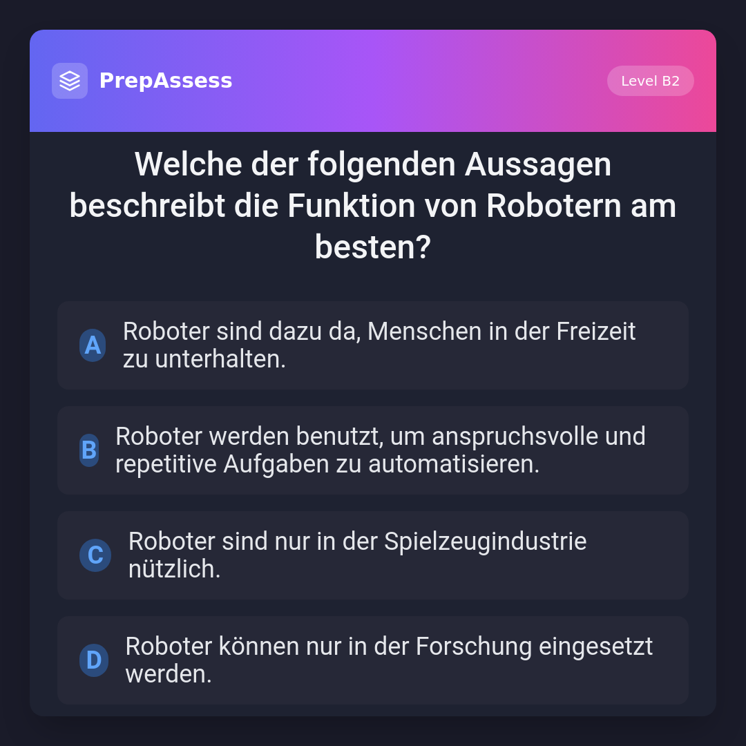 Welche der folgenden Aussagen beschreibt die Funktion von Robotern am besten?