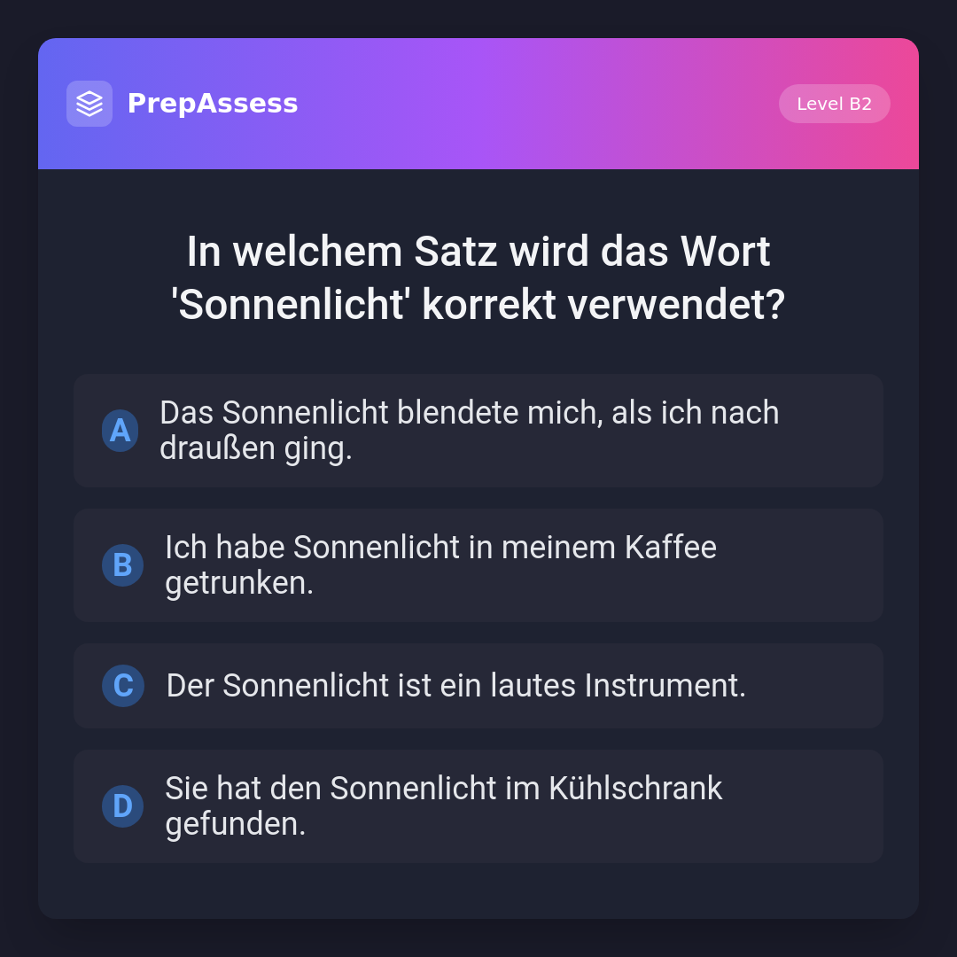 In welchem Satz wird das Wort 'Sonnenlicht' korrekt verwendet?