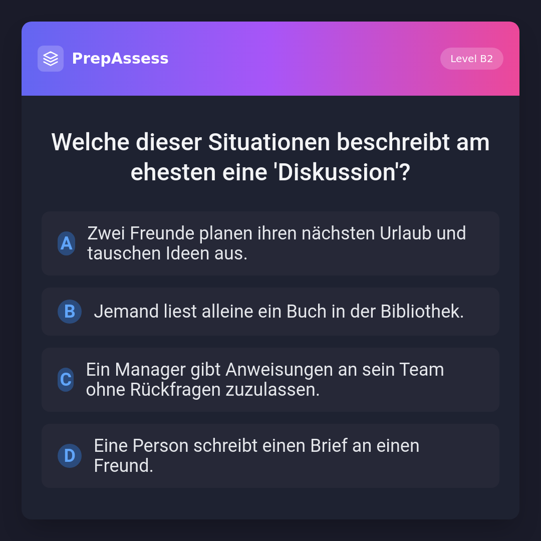 Welche dieser Situationen beschreibt am ehesten eine 'Diskussion'?
