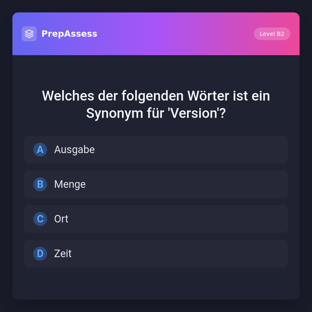 Welches der folgenden Wörter ist ein Synonym für 'Version'?