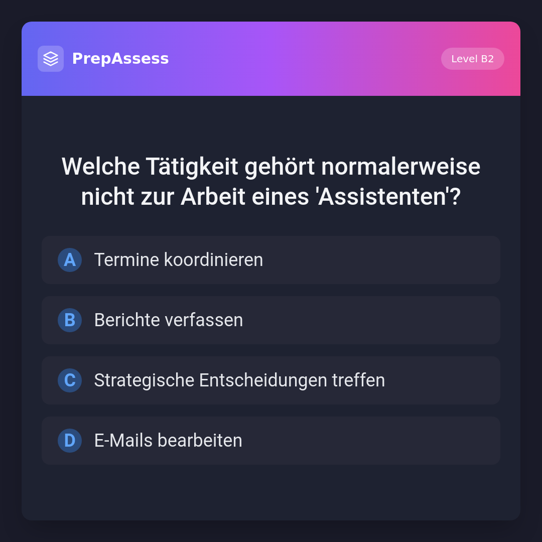 Welche Tätigkeit gehört normalerweise nicht zur Arbeit eines 'Assistenten'?