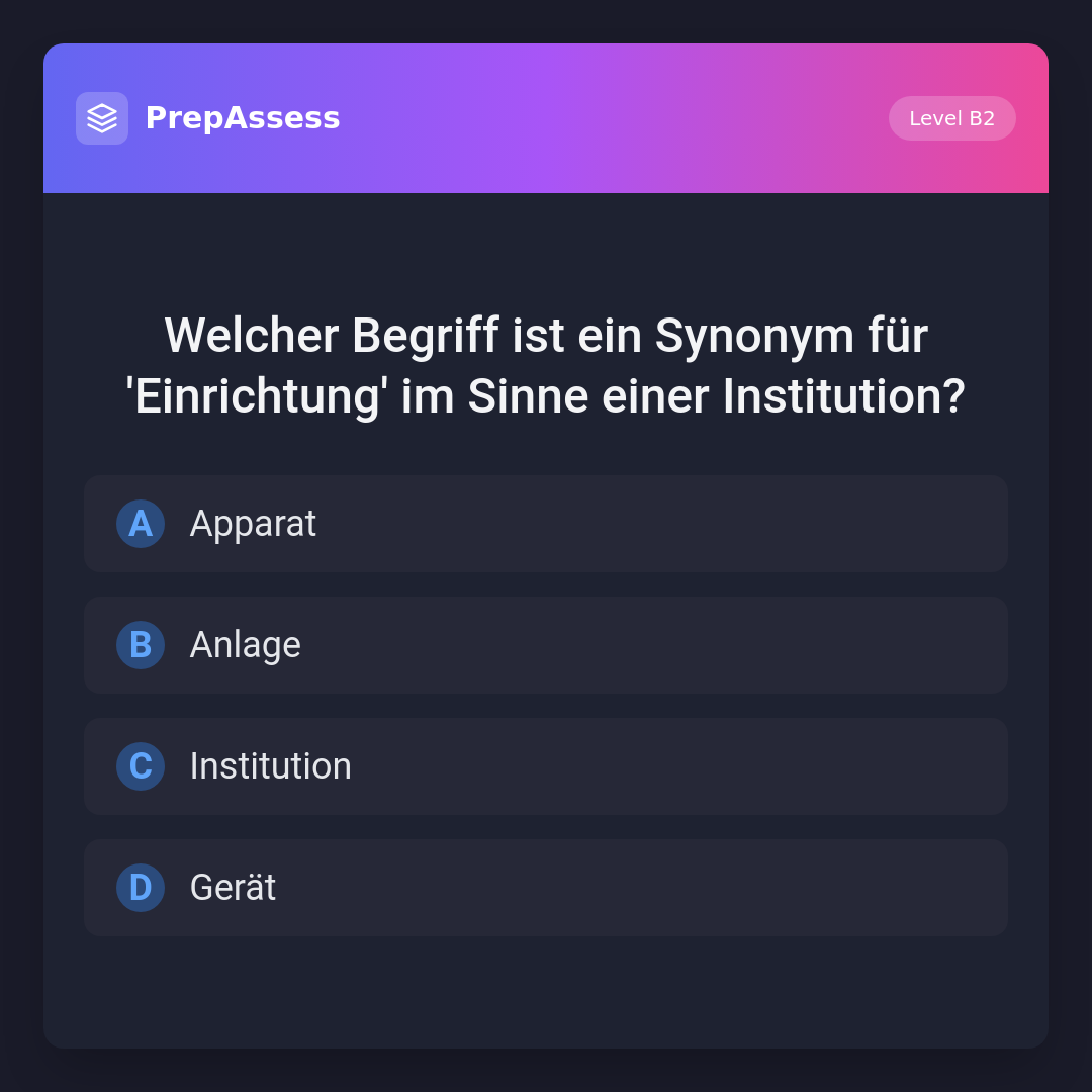 Welcher Begriff ist ein Synonym für 'Einrichtung' im Sinne einer Institution?