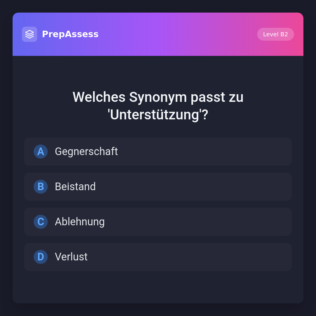 Welches Synonym passt zu 'Unterstützung'?