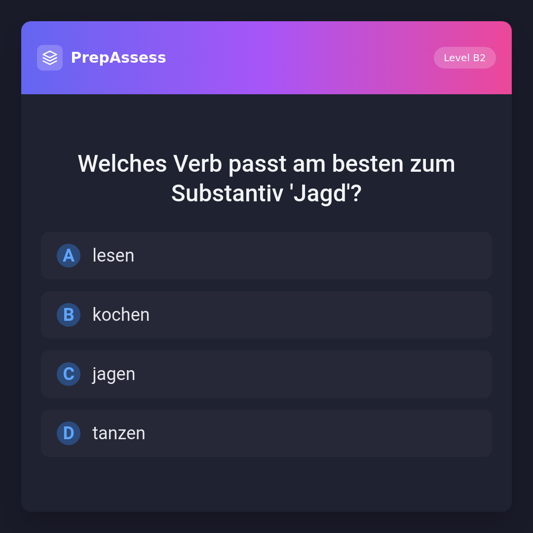 Welches Verb passt am besten zum Substantiv 'Jagd'?