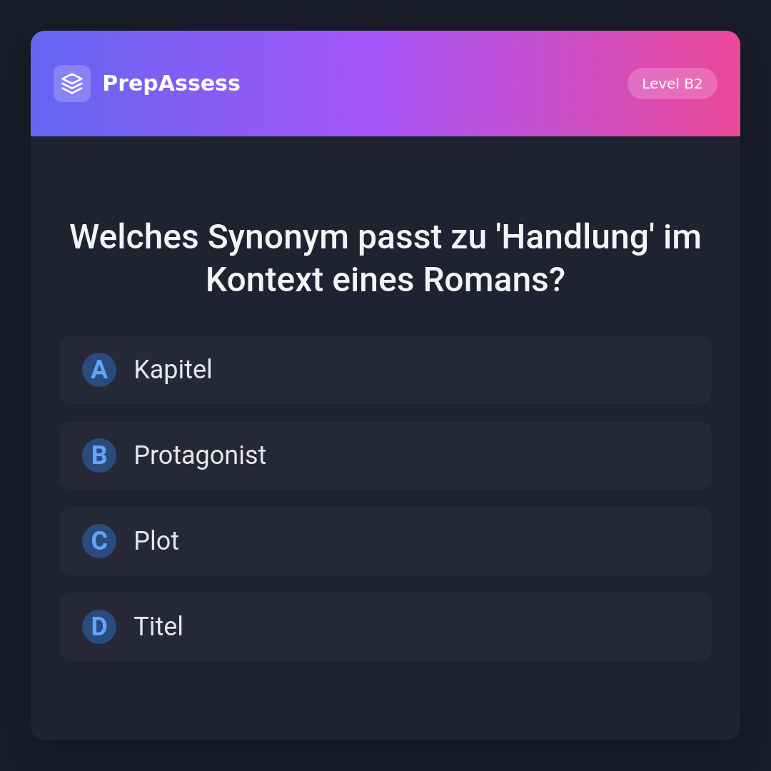Welches Synonym passt zu 'Handlung' im Kontext eines Romans?
