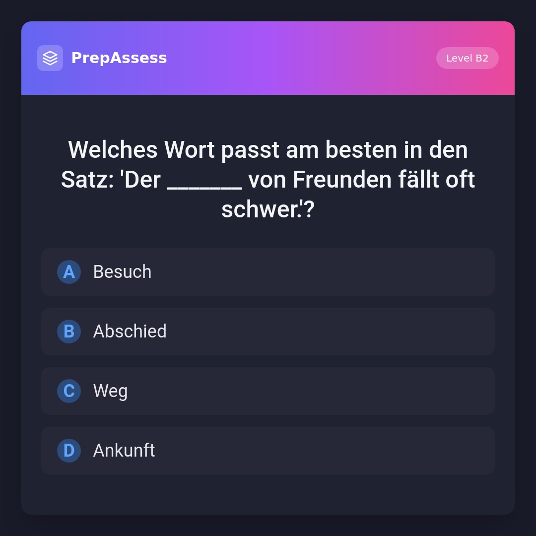 Welches Wort passt am besten in den Satz: 'Der _______ von Freunden fällt oft schwer.'?