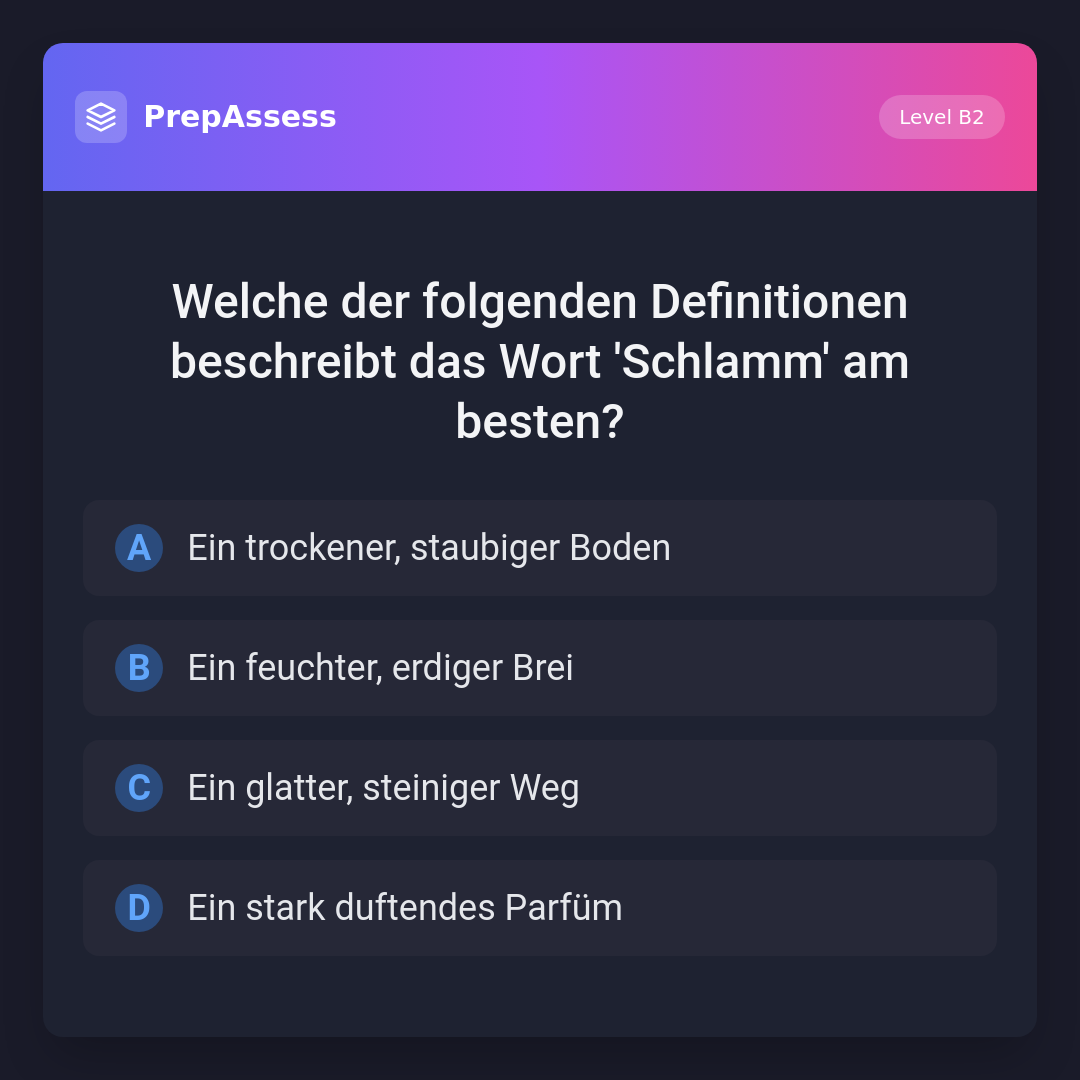 Welche der folgenden Definitionen beschreibt das Wort 'Schlamm' am besten?