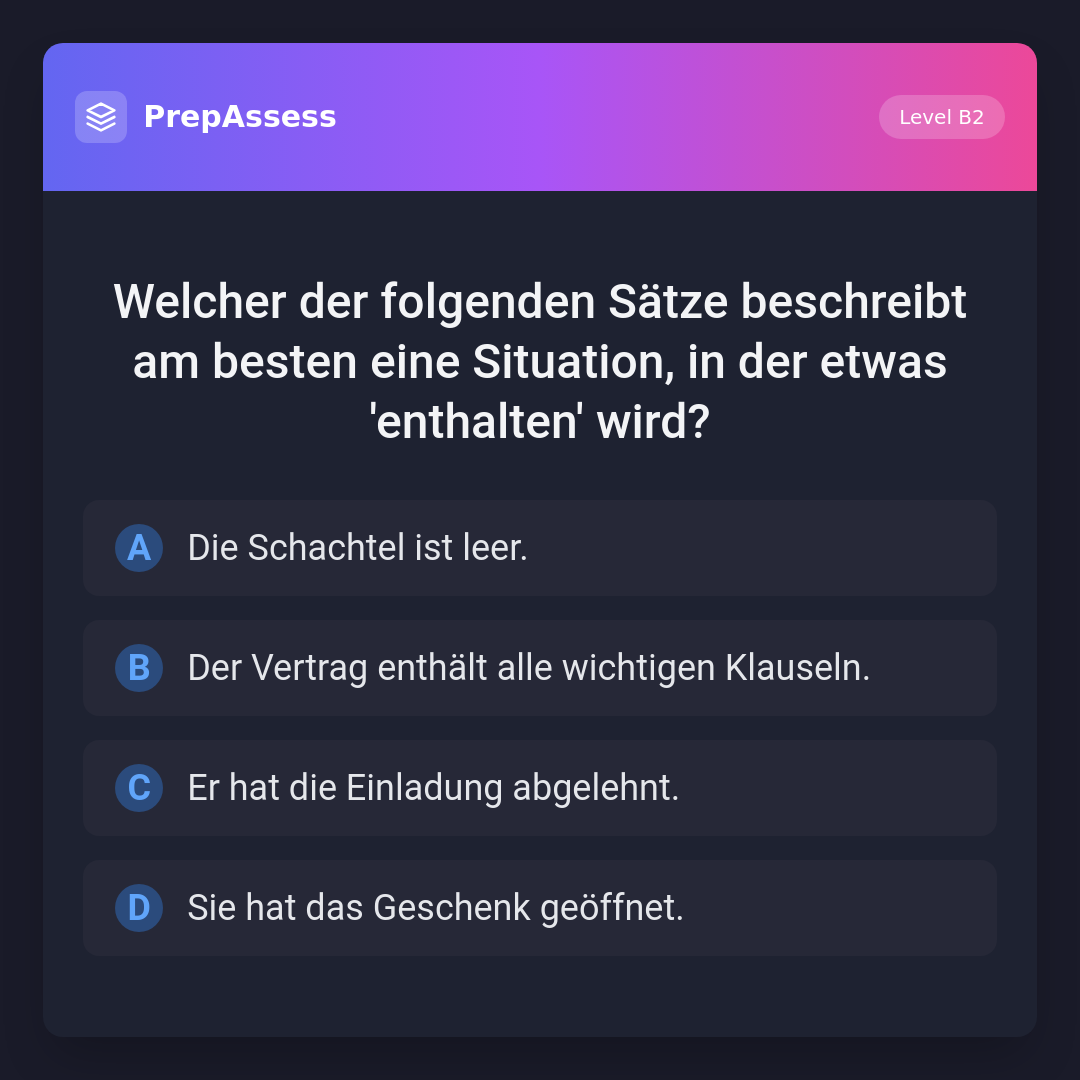 Welcher der folgenden Sätze beschreibt am besten eine Situation, in der etwas 'enthalten' wird?