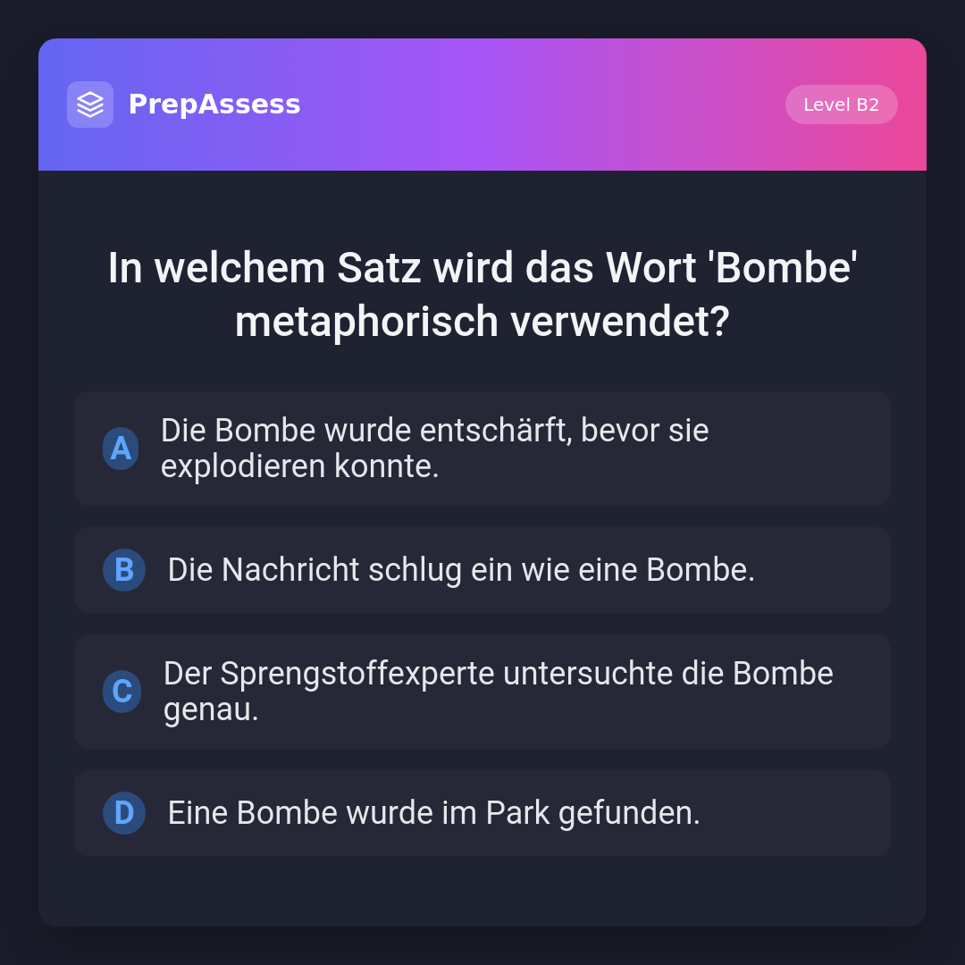 In welchem Satz wird das Wort 'Bombe' metaphorisch verwendet?