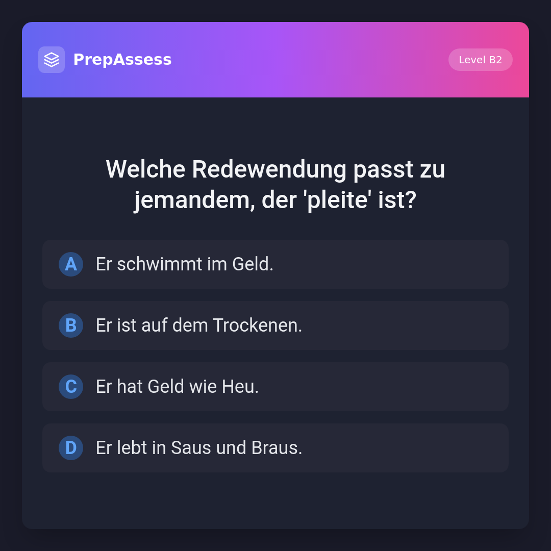 Welche Redewendung passt zu jemandem, der 'pleite' ist?