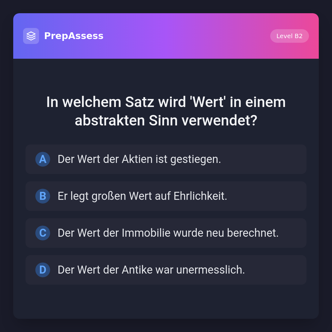In welchem Satz wird 'Wert' in einem abstrakten Sinn verwendet?