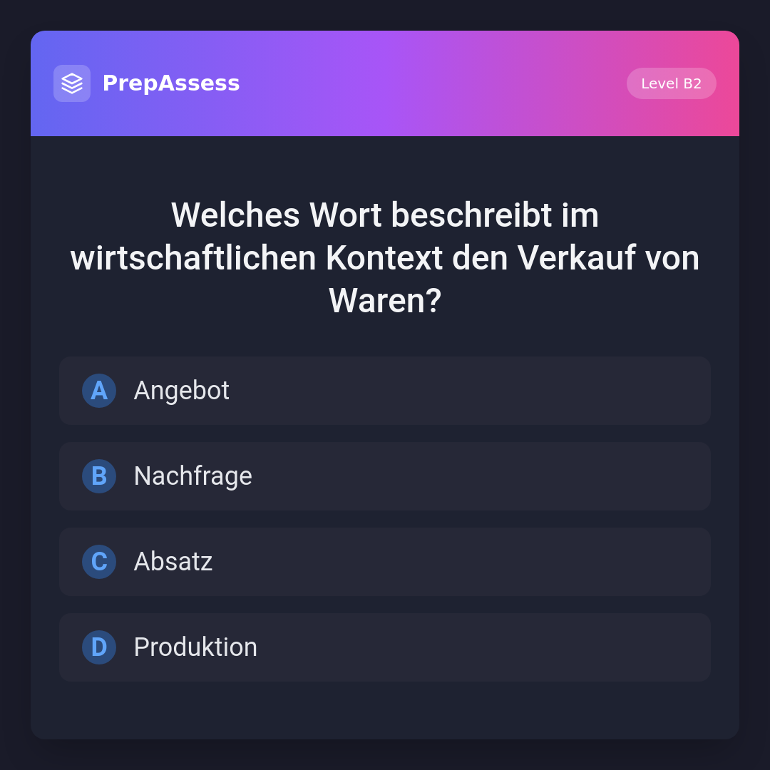 Welches Wort beschreibt im wirtschaftlichen Kontext den Verkauf von Waren?