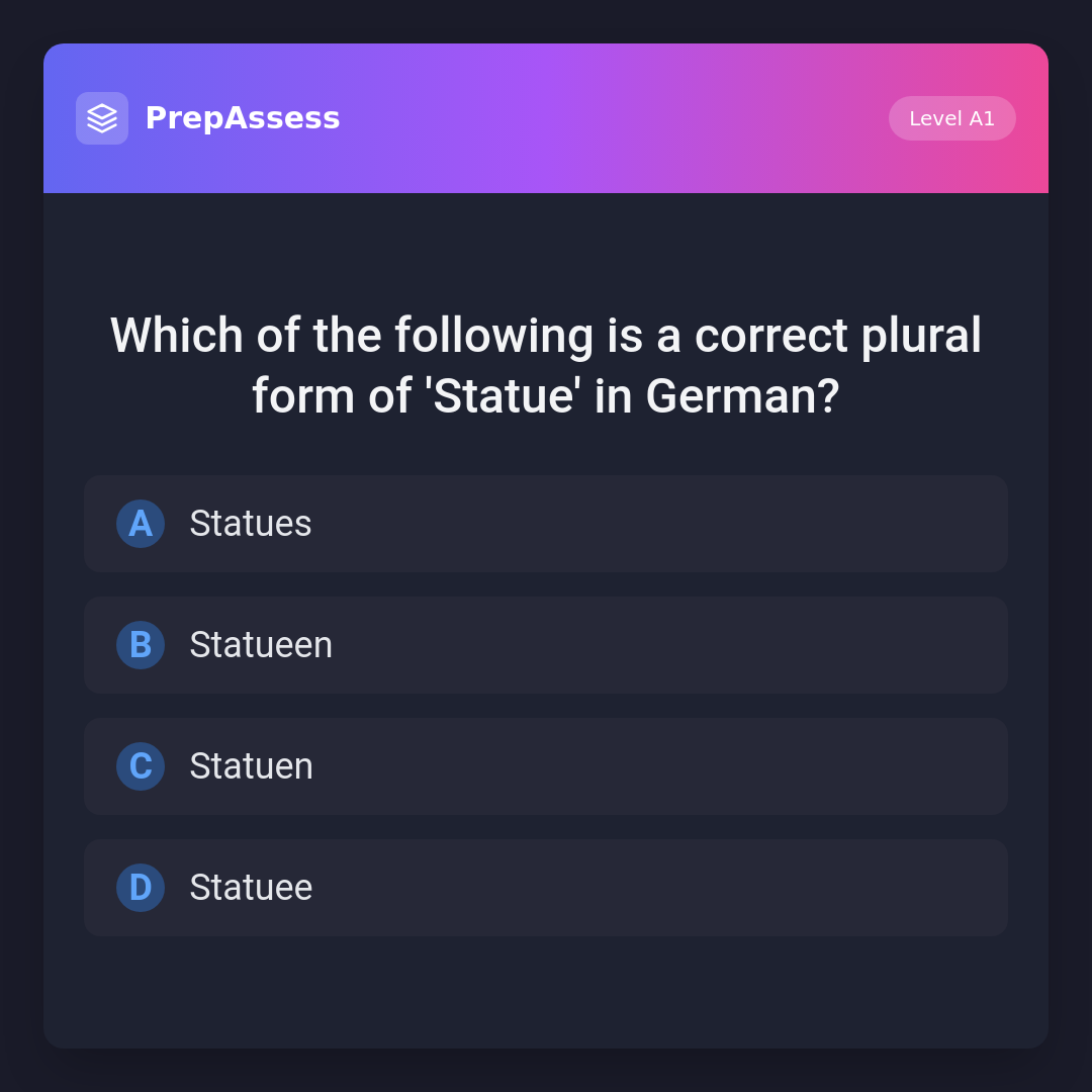 Which of the following is a correct plural form of 'Statue' in German?