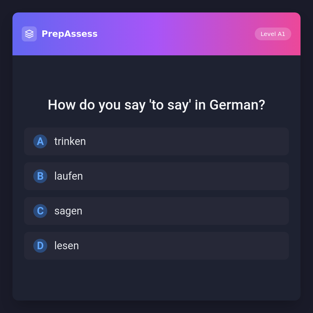 'To say' is translated as 'sagen' in German. The other options are incorrect: 'trinken' means 'to drink', 'laufen' means 'to run', and 'lesen' means 'to read'.